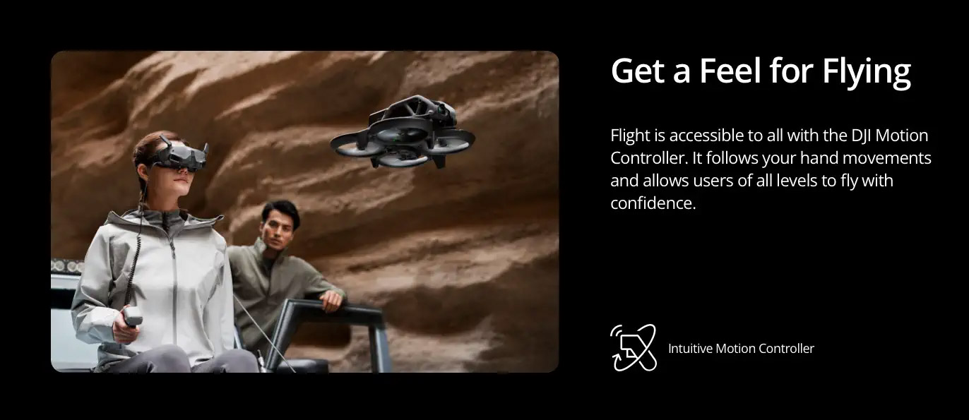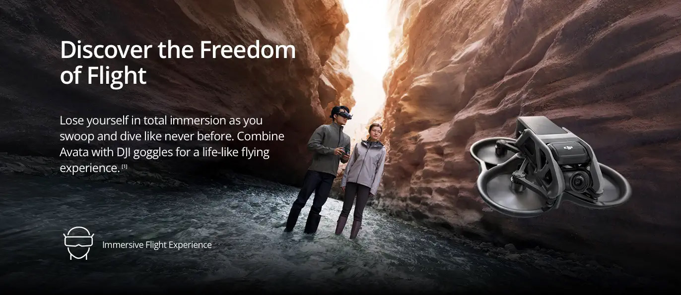 When you combine Avata with the goggles and motion controller, flight becomes accessible to all. Experience the thrill of total immersion with unrivaled safety and control. Embrace your spontaneity and capture the world around you. Some of us were Born to Fly. - A Breakthrough in FPV Visuals